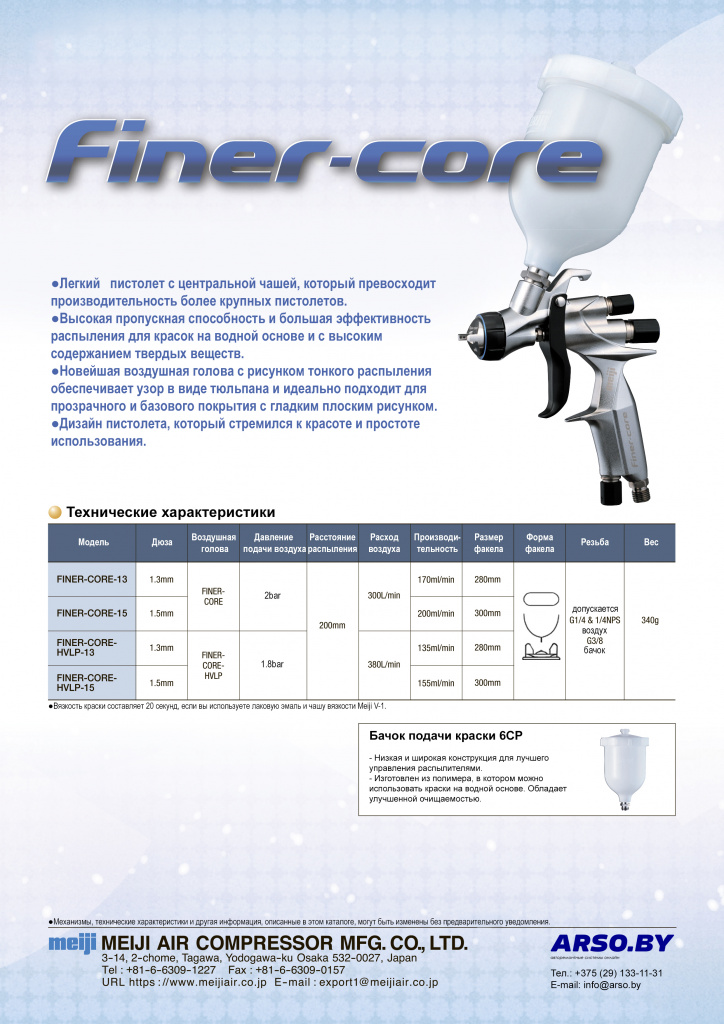 Краскопульт Meiji FINER-СORE 1.3мм (бачок в комплекте)