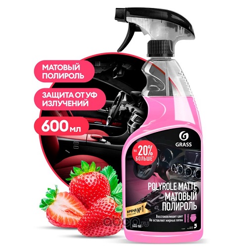 Профессиональный матовый полироль для обработки приборных панелей,  очистки и полировки изделий из кожи, дерева, винила, пластика и резины. Сохраняет первоначальный цвет, не оставляет жирных пятен, препятствует оседанию пыли, придает матовый блеск. Средство обладает приятным ароматом.
