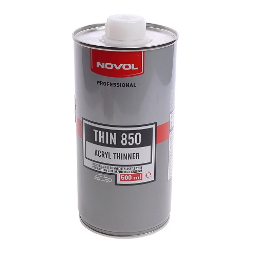 Разбавитель для акриловых продуктов 0,5л Novol THIN 850. Novol Thin 850 — это смесь органических разбавителей, предназначенных для разбавления всех грунтов и акриловых лаков. Производится в трёх версиях: Быстрый, Стандартный и Медленный. Разбавитель в трех версиях позволяет подобрать наиболее оптимальный вариант в зависимости от температуры и размера ремонтируемой поверхности.