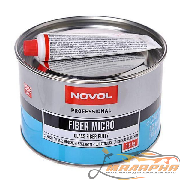 NOVOL FIBER MICRO Шпатлёвка, укреплённая стеклянным волокном. Благодаря применению полиэфирных эластичных смол и коротких стеклянных волокон, шпатлёвка FIBER MICRO обладает значительно большей эластичностью, чем шпатлёвка FIBER, имея при этом высокую механическую прочность. При лёгкой и мягкой обработке может применяться даже на больших поверхностях. Шпатлёвка характеризуется низким уровнем усадки по объёму, благодаря чему ею можно заполнять даже большие убытки. Обладает хорошей адгезией к разным видам оснований, в том числе к оцинкованной стали.